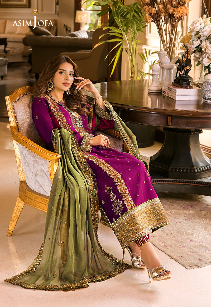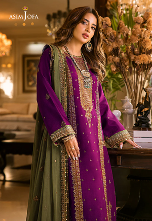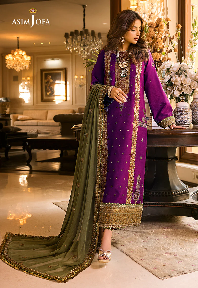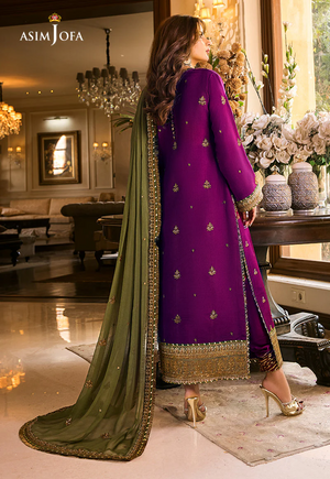 3 Piece Stitched - Embroidered Chiffon Purple | AsimJofa