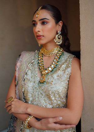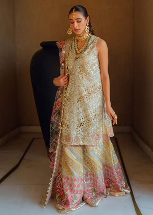 Description: The Star of the Outfit, the gharara, which can be stitched as a lehnga or an azaar, is made up of a hndprinted booti with cascading borders of chata patti in the brightest, prettiest shades of fuscia and purple and ghaaraembroidery. Eclectic and modern with a nod to the past, this is the wedding outfit that dreams are made of.