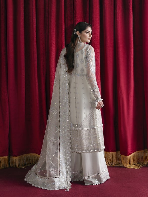- Description: This Aqua-Colored Net Outfit Is A Stunning Piece. The Intricate Embroidery Adds An Element Of Glamour And Sophistication To The Dress. While The Lightweight Net Fabric Creates A Beautiful Flowy Appearance. Paired With An Embroidered Organza Dupatta That Has A Four-sided Embroidered Border, This Ensemble Is The Perfect Choice For A Formal Event Or Wedding. The Subtle Aqua Color Adds A Touch Of Understated Elegance To The Overall Look.