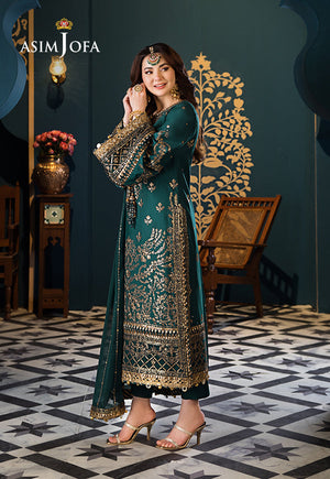 Embark on a journey of elegance with our golden threads of teal dreams ensemble. Like shimmering threads weaving through a tapestry of dreams, antique gold zari and delicate 3mm sequins adorn the rich teal fabric creating an enchanting aura. The embroidered panels and back whisper tales of timeless romance while the borders for the daman, sleeves, and chaak add a touch of magic. With a stunning embroidered dupatta, this ensemble is a testament to the beauty of dreams woven in gold and teal.