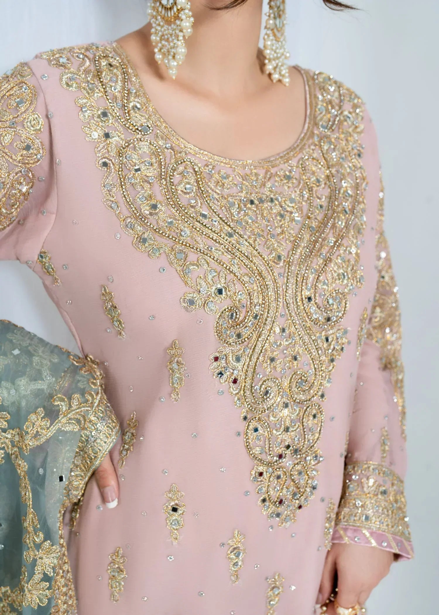 Additional Description: Anjali is a four pirce stitched outfit with intricate embroidery work and hand embellishments.