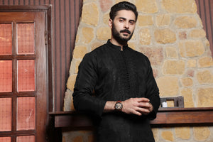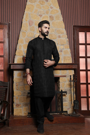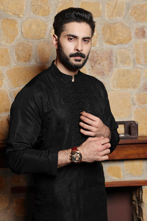 Men's Formal Raw Silk Kurta Pyjama with Computer Embroidery and Sequence on it